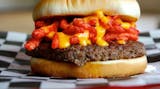 Three 1/3 lb. Angus beef, tomatoes, onions, lettuce, pickles, mayo, ketchup, mustard & cheese.
